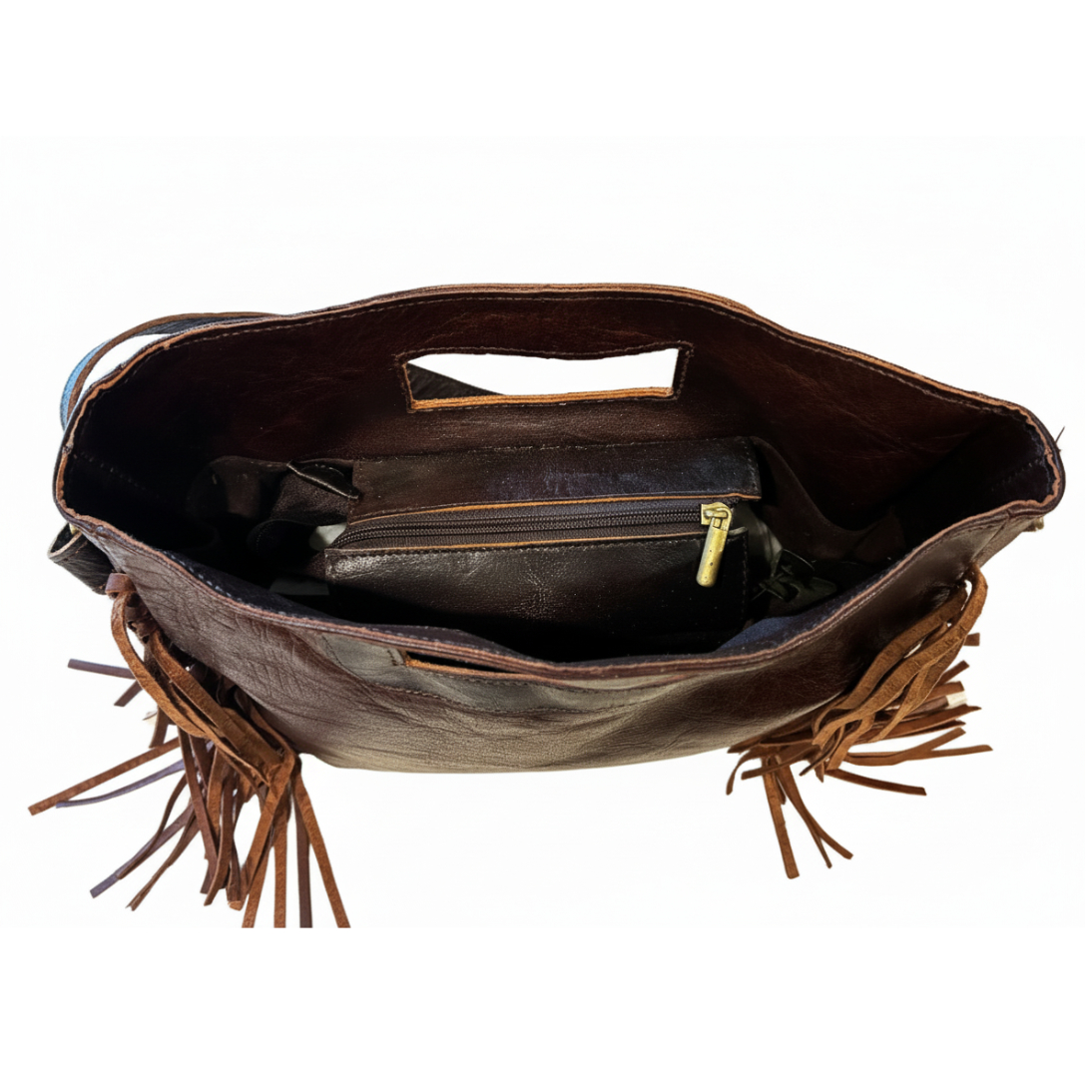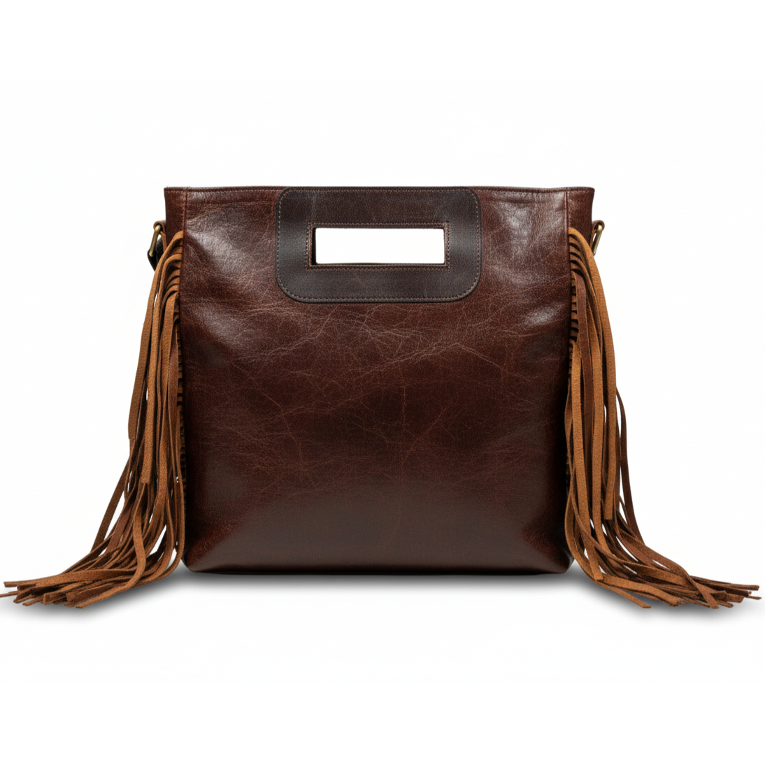 Confeccionado en cuero de curtido profundo, el Bolso de cuero Waco irradia un estilo western auténtico, subrayado por los flecos dinámicos que bailan con el movimiento, y las asas integradas que lo hacen tan funcional como llamativo. Es un tributo a la artesanía que no teme al camino ni al paso del tiempo.