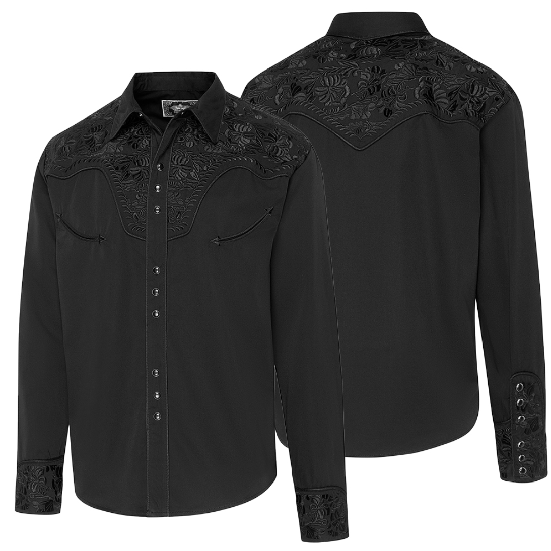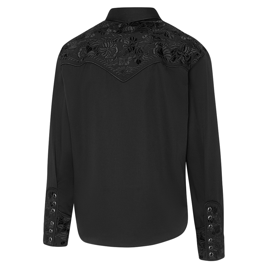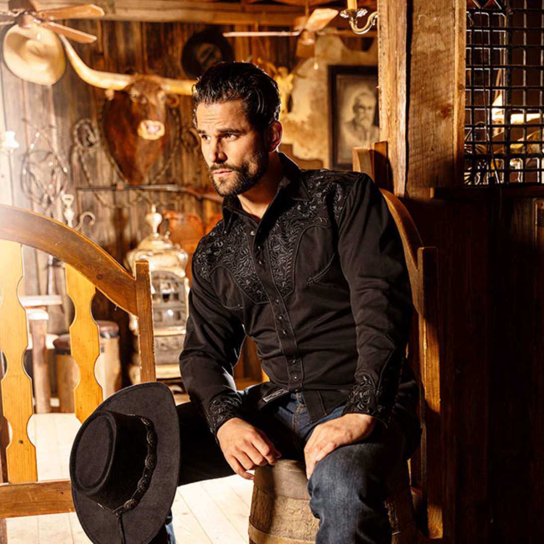 Su fuerza reside en los icónicos canesúes de estilo vaquero, adornados con un bordado tonal que añade profundidad y textura sin ser ostentoso. Este sutil trabajo artesanal evoca la herencia del Oeste, perfecto para el hombre que prefiere la autoridad de un estilo discreto.