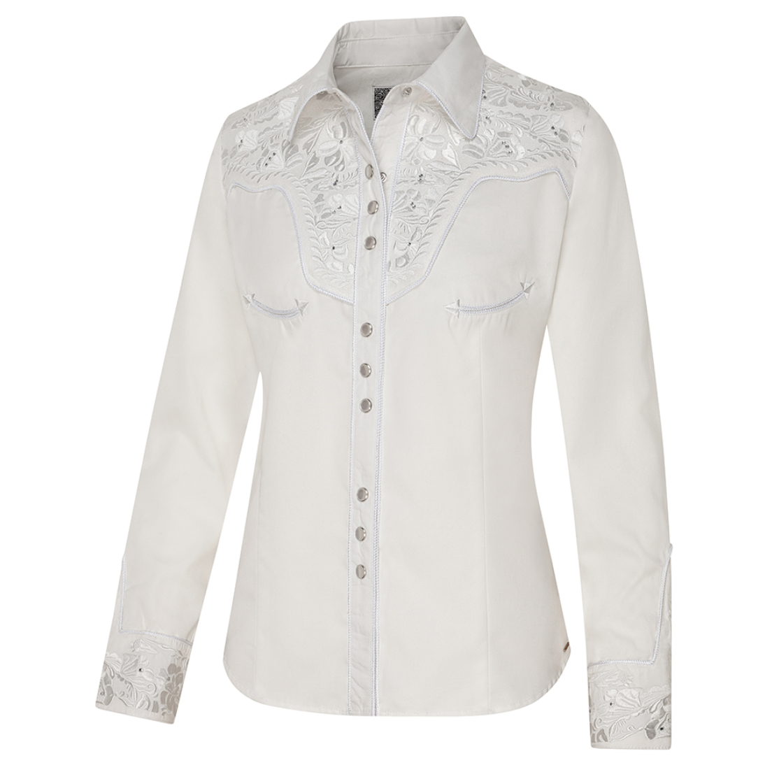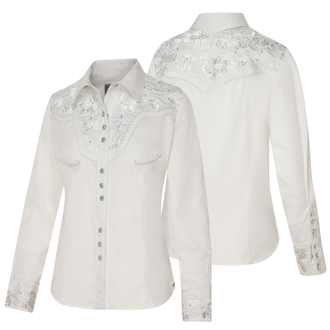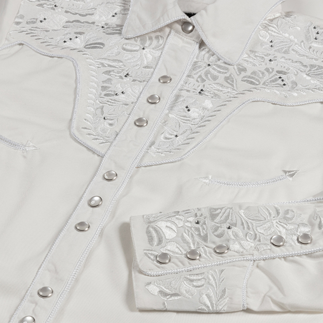 Camisa bordada Hailey: Elegancia Western en Blanco Puro
