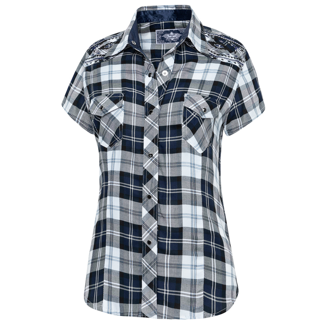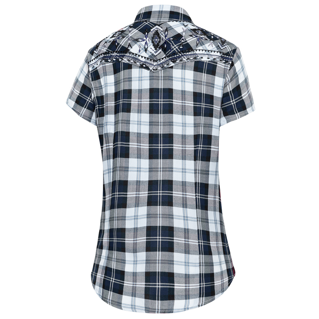 Confeccionada íntegramente en 100% viscosa, esta camisa de manga corta te ofrece una caída suave y ligera que acaricia la piel, ideal para esos días en que buscas comodidad sin renunciar al estilo auténtico. Sus detalles distintivos al más puro estilo western —como los bordados geométricos en los hombros y los bolsillos con solapa en el pecho— te transportarán instantáneamente a un paisaje de horizontes abiertos y melodías de guitarra.