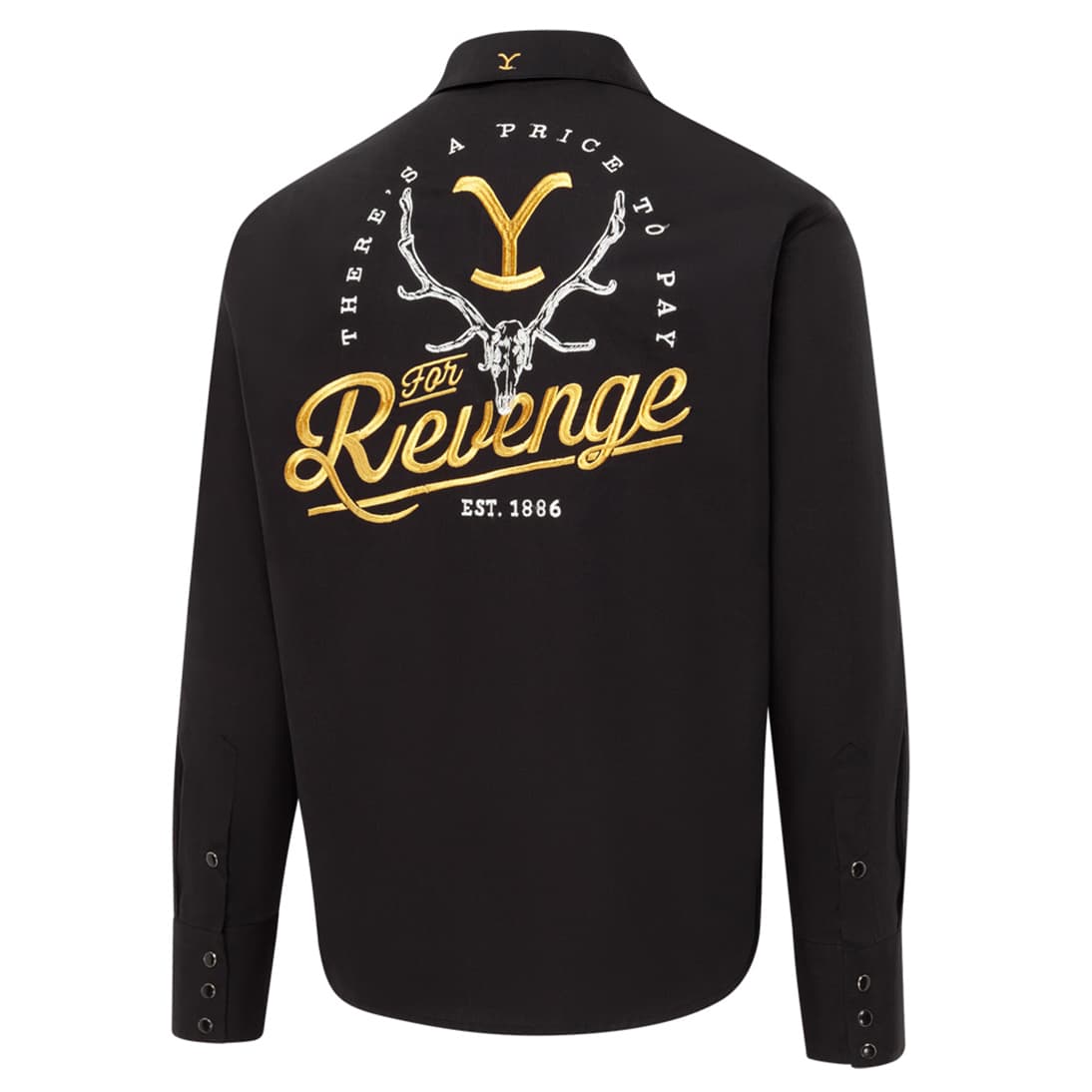 Exquisita Camisa For Revenge Yellowstone de estilo western con bordado premium bicolor en la espalda.