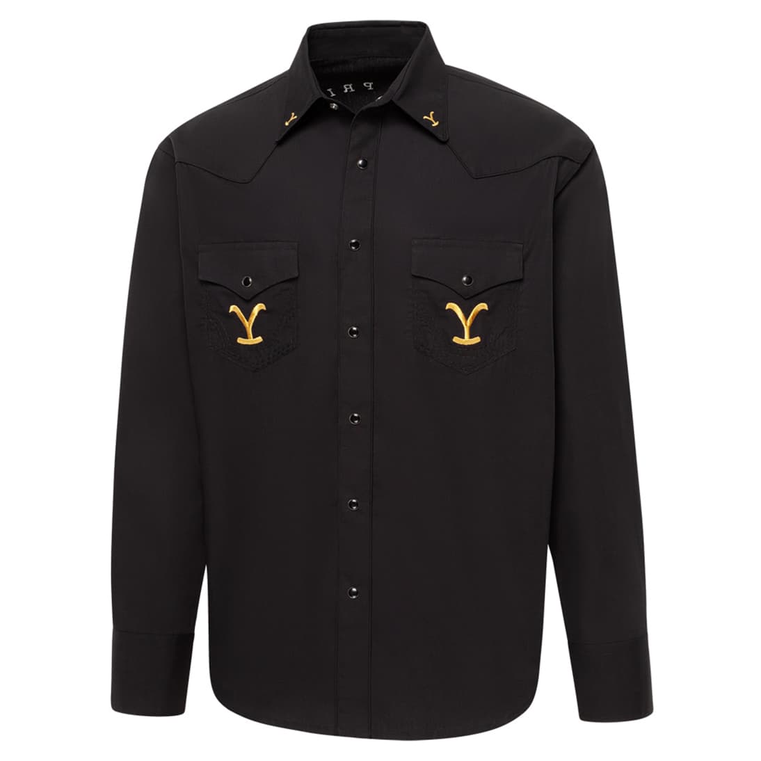El logo “Y” de la marca Yellowstone está bordado en los bolsillos del pecho, en las puntas del cuello y en la parte posterior de la nuca.
