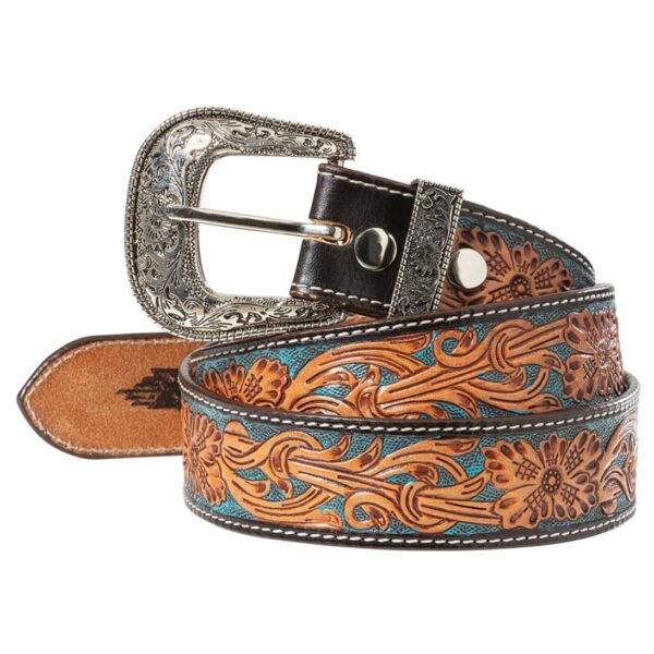 Este cinturón ha sido creado para quienes buscan algo más que un accesorio; es una pieza de artesanía en piel de vacuno que destaca por su relieve floral hecho a mano.