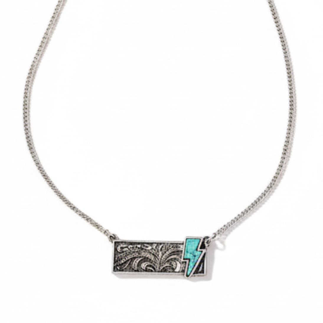 Este colgante es la mezcla perfecta entre la delicadeza tradicional y la electricidad del Lejano Oeste. El Colgante Rodeo captura dos mundos: la belleza artesanal de la filigrana en su placa, y la energía indomable del rayo, un símbolo de suerte y destino. Es un accesorio que susurra historias de polvo y gloria, de tradición y atrevimiento.