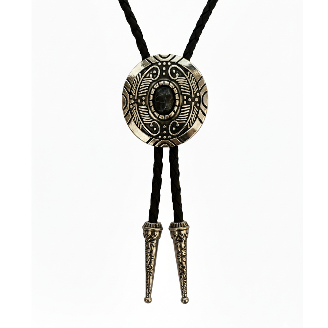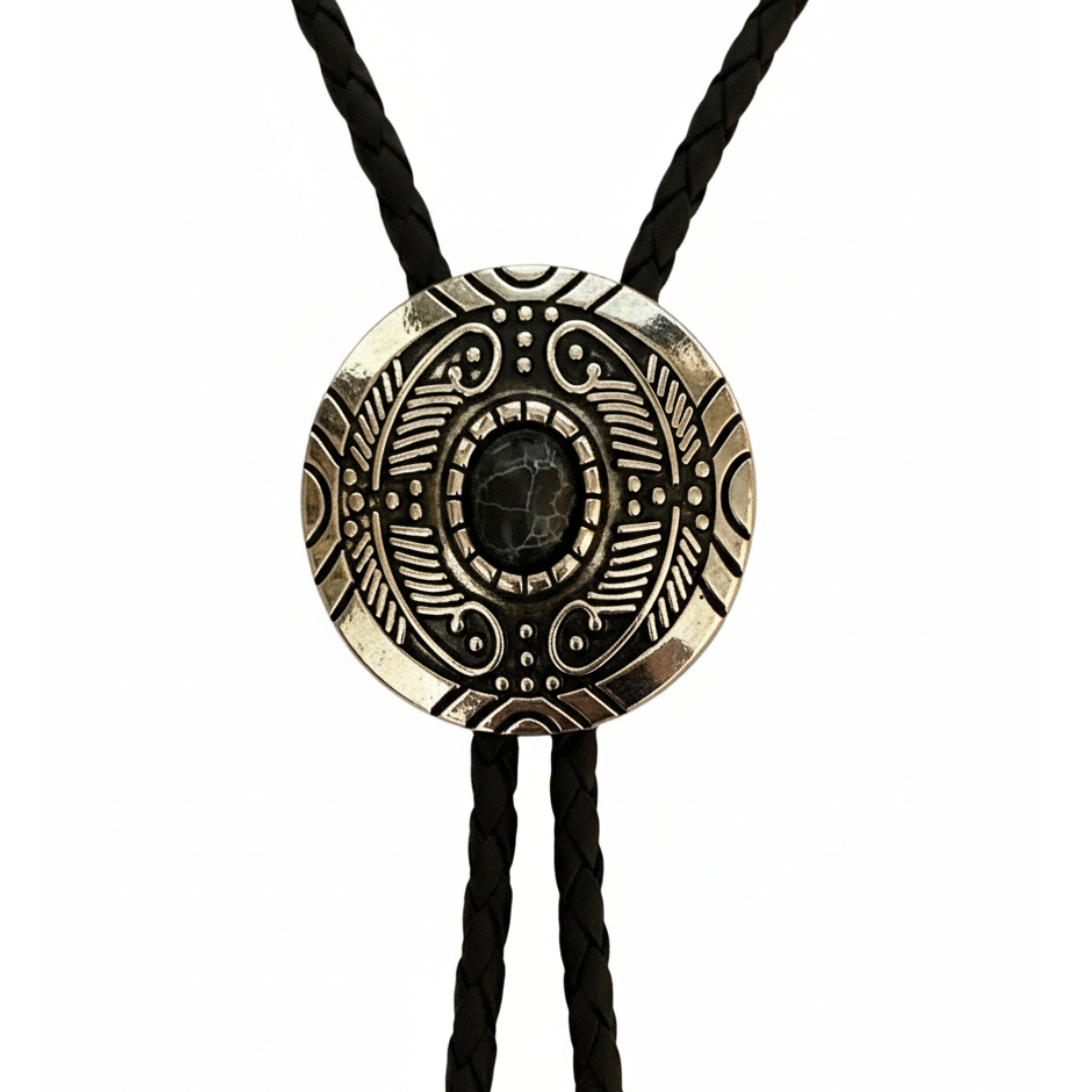 Acabado Perfecto: El cordón de cuero trenzado y las terminaciones metálicas plateadas completan este accesorio que te hará destacar tanto en un rodeo como en un evento formal.