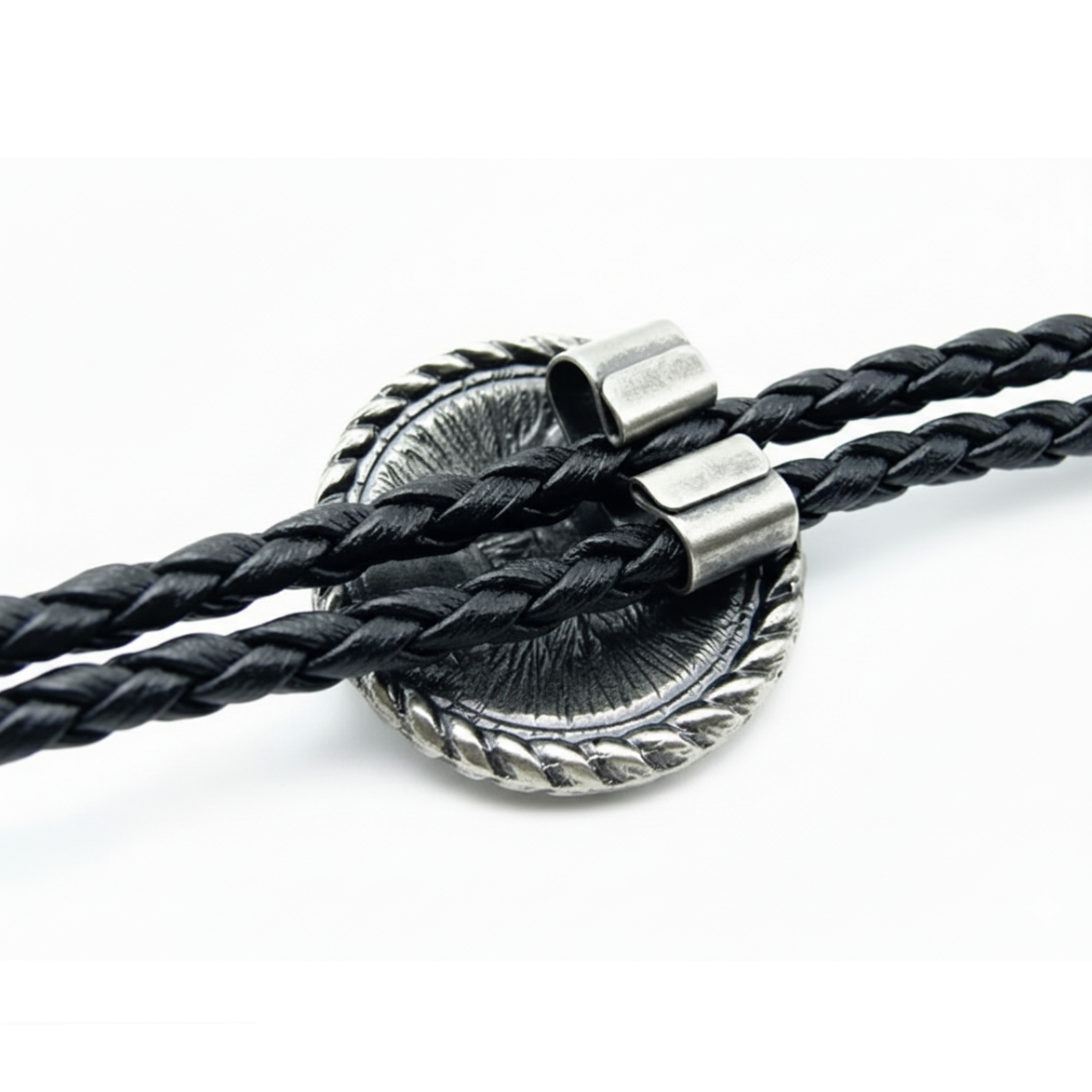 Ajuste Firme: El robusto cordón de cuero trenzado y el cierre trasero de pinza aseguran que tu corbatín se mantenga en su sitio, reflejando la firmeza de tu estilo.