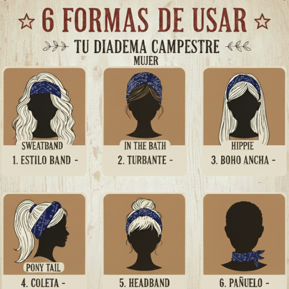 La Diadema Bandana no solo añade un toque cowgirl inconfundible, sino que es increíblemente práctica. Úsala para: