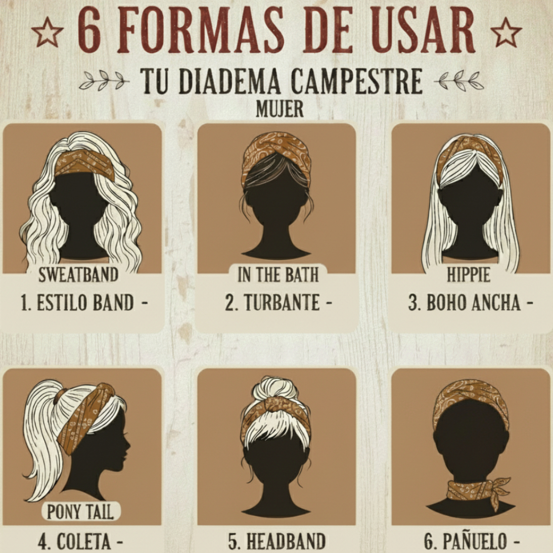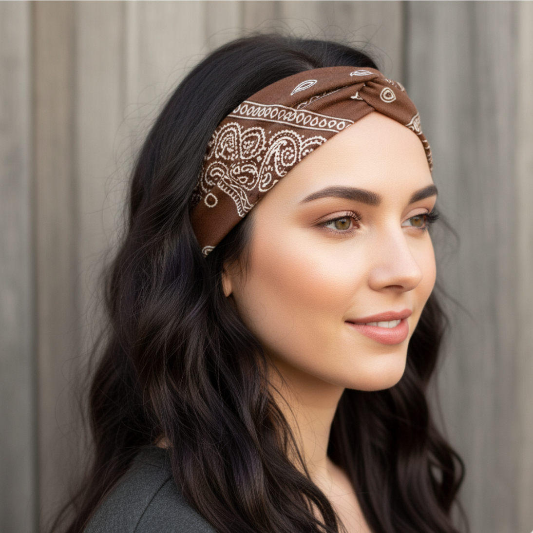 El marrón es el color de la tierra, el cuero curtido y las raíces profundas del estilo country americano. La Diadema Bandana en este tono Marrón Tierra te conecta con la autenticidad y la calidez del rancho, aportando una sofisticación rústica a cualquier look.