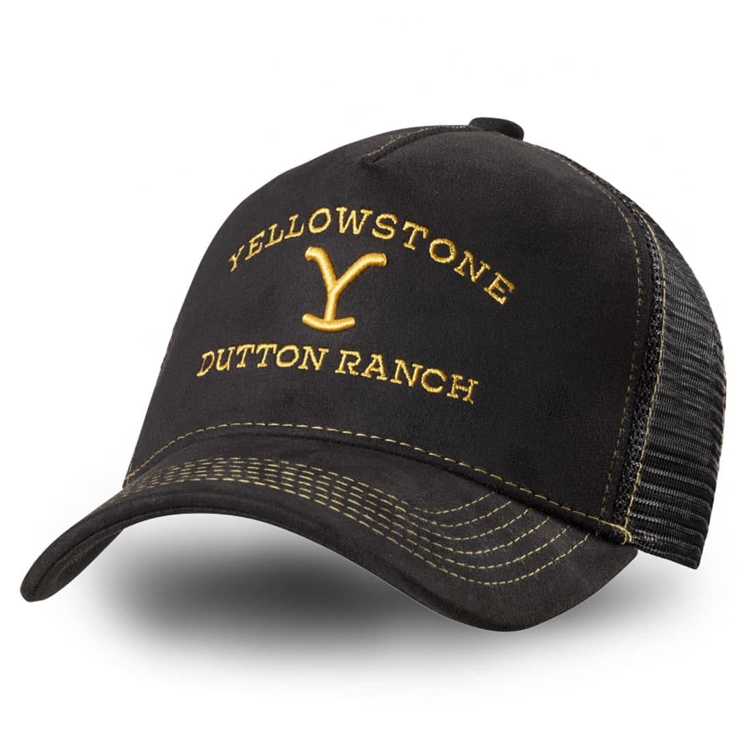 La obra maestra de las truck cap: Gorra Dutton Ranch Black Yellowstone de 5 paneles con look de ante (suede) e inserción de malla.