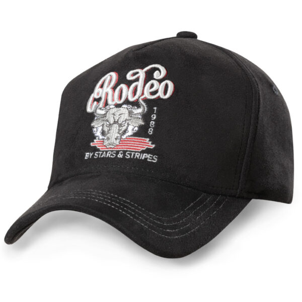 El protagonista indiscutible es su elaborado bordado 3D en el frontal: el potente “Rodeo”, el emblemático toro y la orgullosa frase “BY STARS & STRIPES”. Cada puntada es un homenaje a la rica tradición vaquera. La visera curva, también con efecto ante y finas costuras decorativas, añade un toque de autenticidad que la hace única.