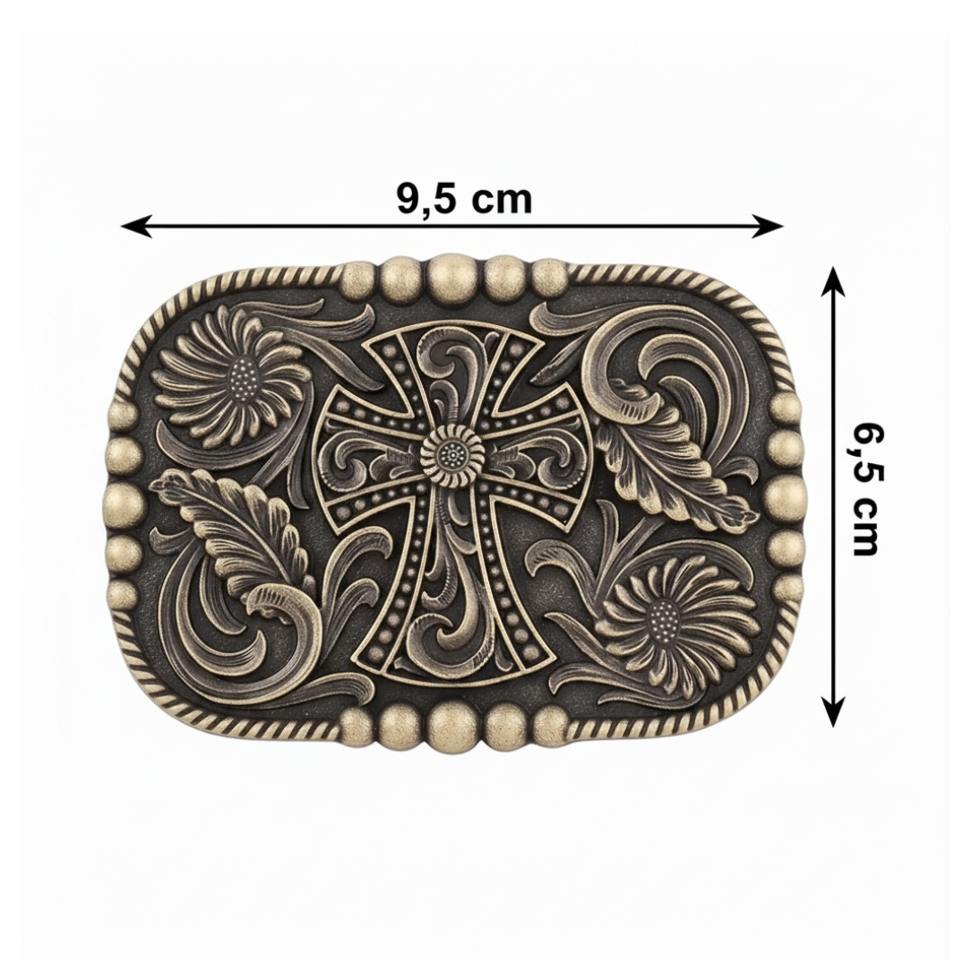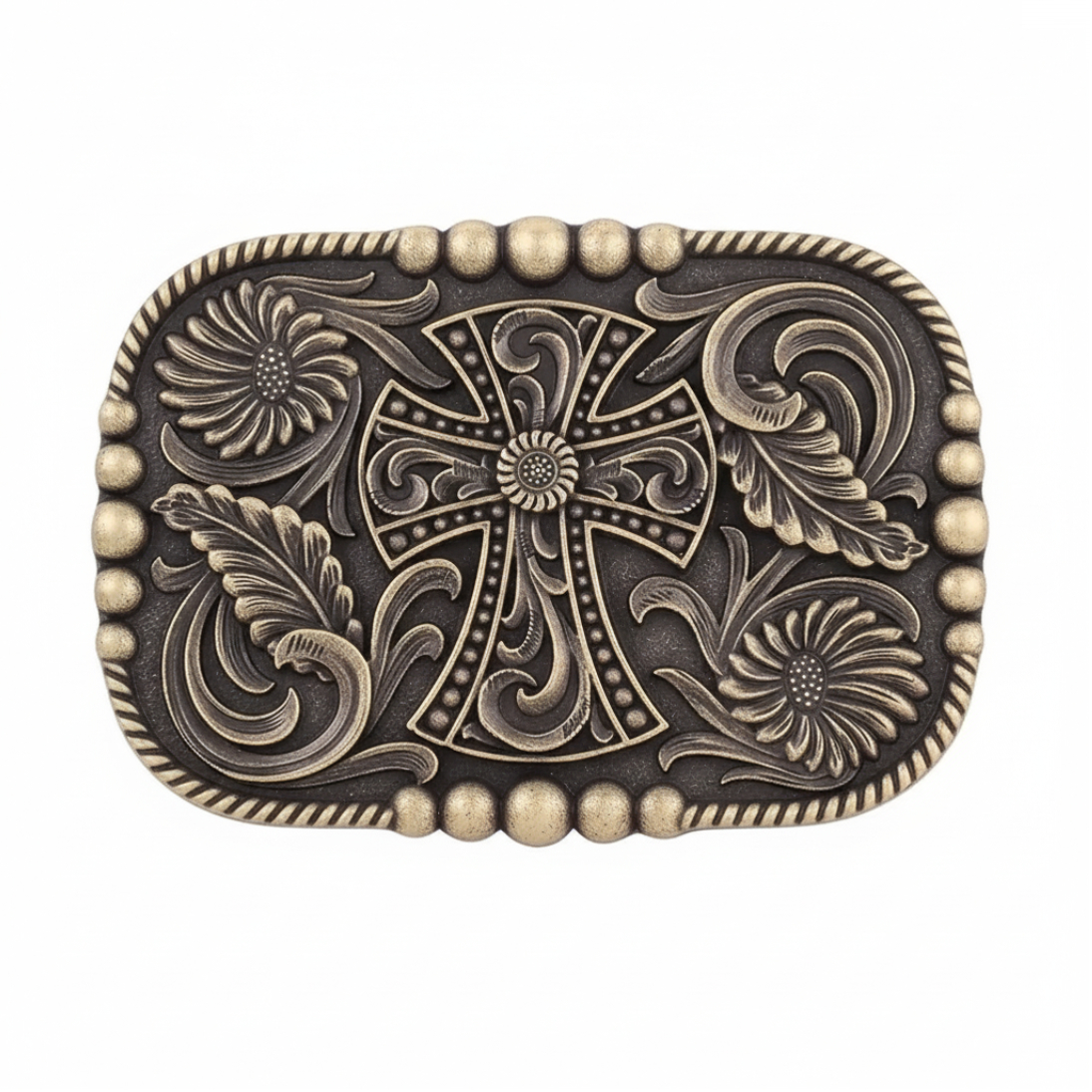 La Hebilla Iron Horse es una pieza que entrelaza la fortaleza del acero y la calidez de la fe en un diseño evocador. Su nombre rinde homenaje al tren, el “Caballo de Hierro”, que forjó las rutas del country americano y llevó la civilización a la frontera.