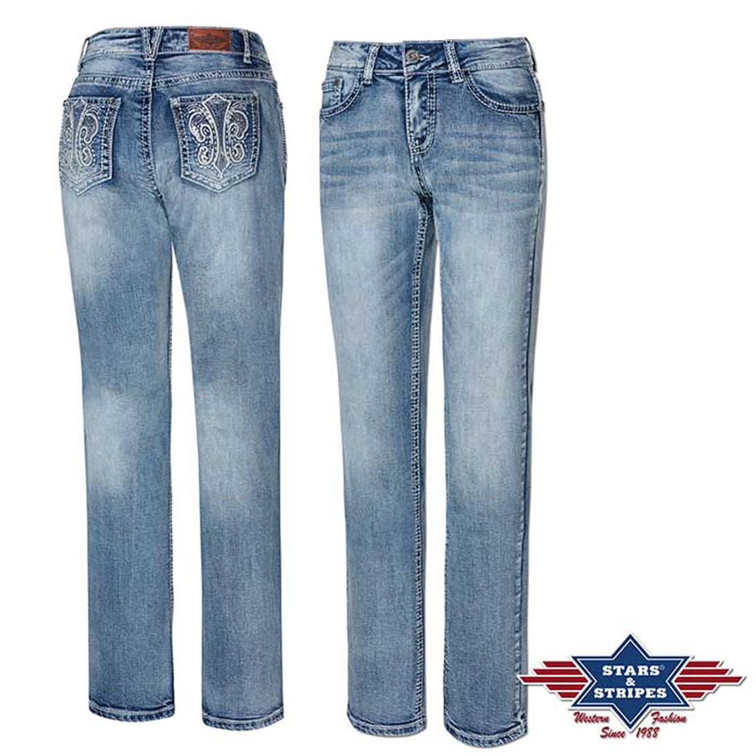 Originales pantalones vaqueros para mujer Lexi, con adornos en los bolsillos.