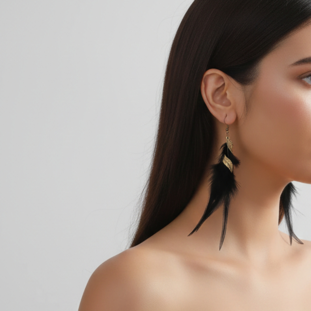 Hay accesorios que no solo se llevan, sino que cuentan una historia, y nuestros pendientes Sombra son un tributo a esas noches estrelladas bajo el cielo del Gran Cañón. Imagina la suavidad de las plumas naturales en un negro absoluto, tan profundas como el azabache, que caen con una ligereza casi etérea.