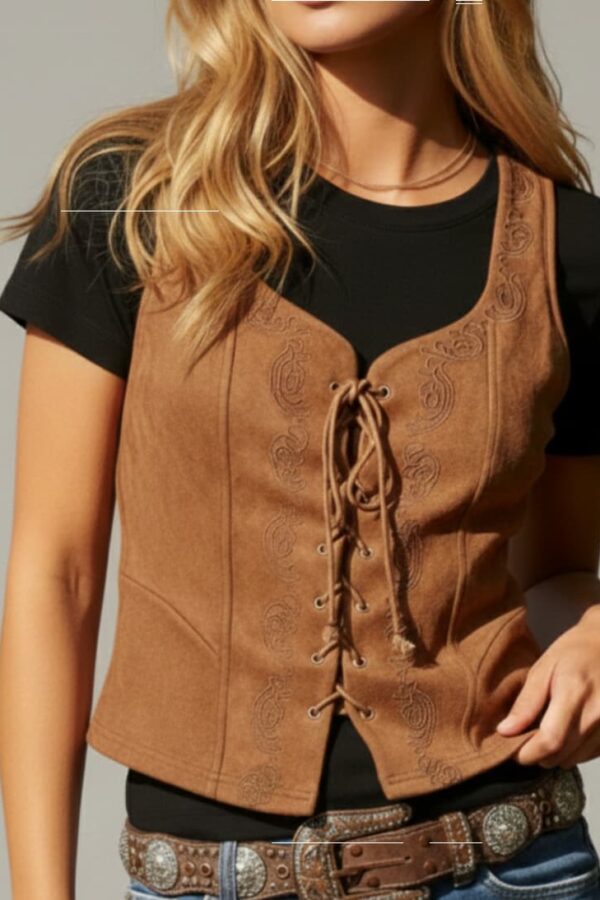 - En la sección chalecos; chalecos de ante, de cuero, con flecos y preciosos motivos bordados, para que esos flecos se muevan cuando camines, cuando bailes. Cómodos y fáciles de poner inlcuso a diario para que marques tu personalidad y tu diferencia.